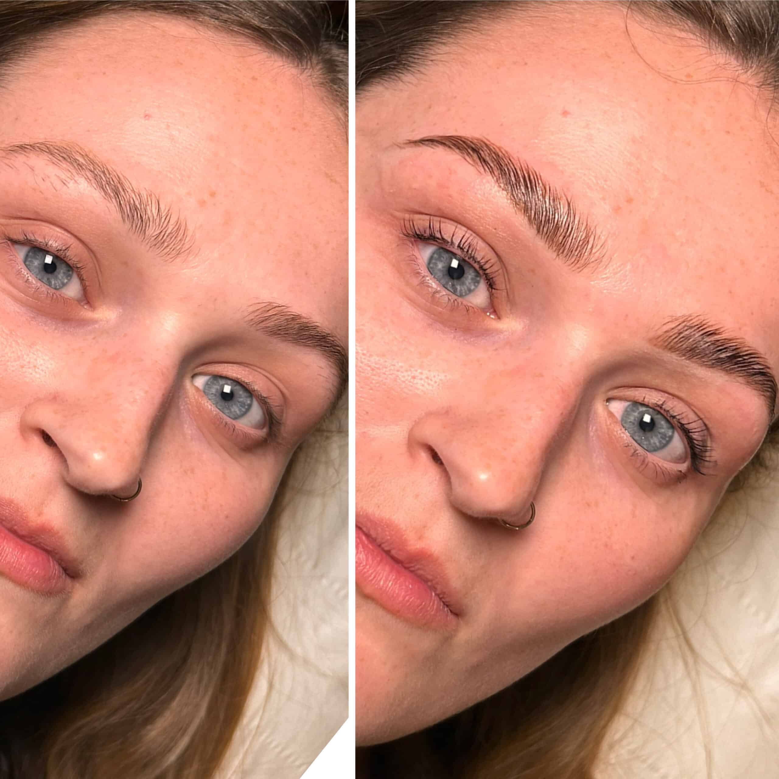 I offer expert brow shaping and lamination, lash lifts, and advanced Million Dollar Facial treatments including dermaplaning and microneedling to help improve skin texture and glow.